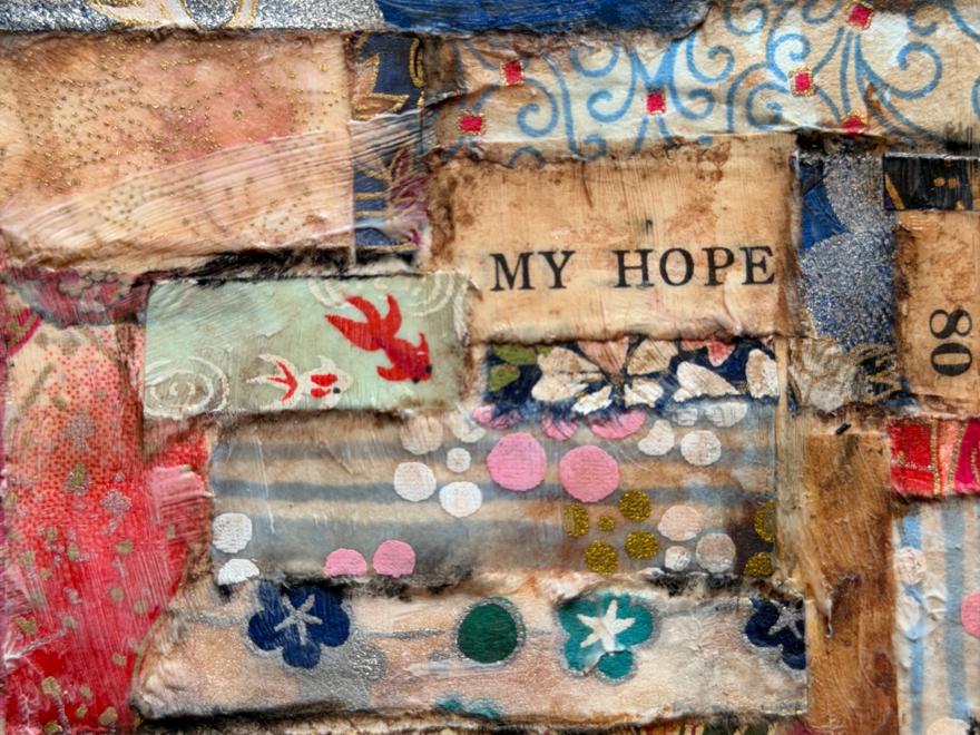 Begin to create a small mixed media collage as if you are revealing that message.
